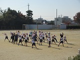 体育では、元気いっぱいラジオ体操をし、並んで運動場を走りました。体操もランニングもばっちりです。