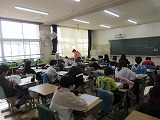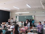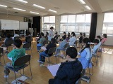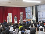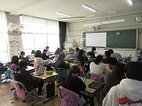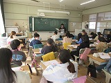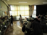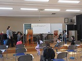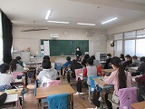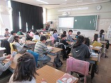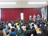 5・6年生で多目的室は満員になり、子どもたちは歓声を上げながら聞いていました。