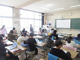 算数では、比例の学習です。表やグラフから比例かどうかを説明し合いました。説明するには、定義をしっかりわかっていないといけません。