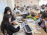 図工では、スタンプづくりをしました。発泡スチロールを加工してオリジナルスタンプを作りました。