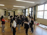 2年生は来週、おもちゃランドで1年生を招待します。1年生に楽しんでもらえるように、それぞれのおもちゃ屋さんで動きや接客の練習をがんばっています。