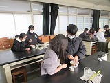 理科では温度によっての溶け具合の違いを実験しました。ペアで協力して安全に行いました。