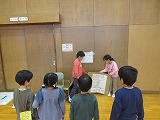 保護者の方に来てもらい、それぞれのグループで作った動くおもちゃで遊んでもらいました。