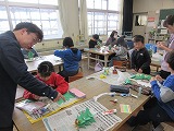 1年生を招待しておもちゃランドを開きました。1年生がすごく楽しそうに遊び、準備した2年生はとてもうれしそうでした。それぞれのおもちゃ屋さんが楽しく遊べる工夫をした成果です。その後、2年生の保護者の方にも来ていただき、おもちゃランドを楽しんでいただきました。