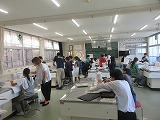 今日も家庭科支援ボランティアの保護者の方が来てくれました。ミシン操作で困ったらすぐに教えてもらえて、子どもたちは安心してトートバックづくりが進みました。