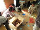 生活科のどんぐりまつりに向けての準備を進めています。グループで相談しながらアイデアを出し合っています。
