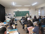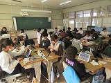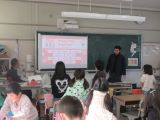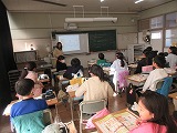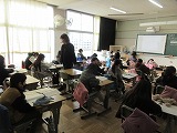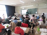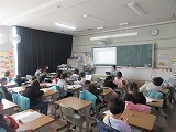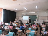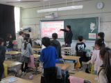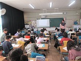 <3年生>  外国語活動では、クリスマスソングを歌いながら、自分が歌う前に選んだ英単語が歌い終わるまで残るかどうかを確認するアクティビティを行いました。選んだ英単語が最後まで残るとみんな大喜びでした。