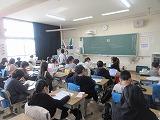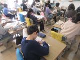 席替えをしていました。どの席になるのかドキドキしていて、発表されると歓声があがりました。新しい席で人間関係も広がっていきます。