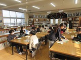 音楽では、半分ずつピアノの前に集まって歌練習をしました。友達の歌声と重なりきれいに響き合っていました。