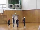 体育では、ソフトバレーです。レシーブではなくキャッチをしてトスします。うまくラリーが続いていました。
