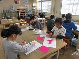 図工のカッターナイフでは、曲線を切るときに「難しい」と言いながらもがんばりました。