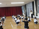 休み時間もダンスの自主練をしていました。子どもたちは、習ったばかりの動きをすぐに表現できるので吸収が早いです。