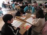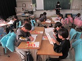 書写コンクールの清書にチャレンジしました。とても静かで書くことに集中していました。