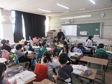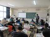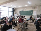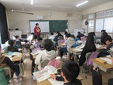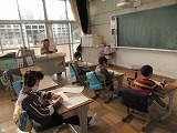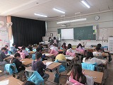 音楽では、卒業の歌を聞きました。卒業式では5年生が在校生代表として式に出ます。