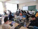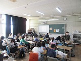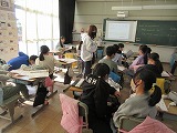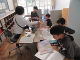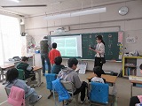 社会では、調べ学習でまとめたことをグループで発表しました。お面を付けて歴史上の人物になりきって説明する子もいて盛り上がりました。