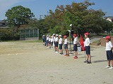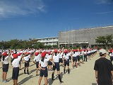 2時間目に予行練習をしました。運動会の開会式と閉会式の練習や応援の練習をしました。暑さもありましたが、応援団のかけ声で元気いっぱい歌いました。