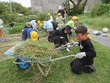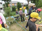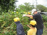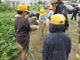 わかば・あおば・よつば学級では、自立活動に取り組んでいます。個々の課題に取り組んだり、グループで学習をしたりします。今日は、グループに分かれて綿の収穫と畑の草取りをしました。グループ対抗の草取りではあっという間に草がなくなりました。