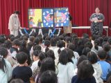<大放課> 1,2年生が多目的ルームで、PTA図書部による紙芝居「そりあそび」を鑑賞しました。