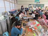 図工では、ともだちハウスが完成に近付いています。