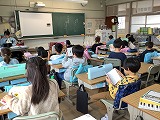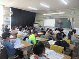 <4年生> 食に関する指導で、「おやつのじょうすな取り方について考えよう」という授業がありました。給食センターから栄養士の先生が来てくださり、おやつを上手く取り入れることについてを教えてもらいました。