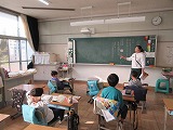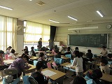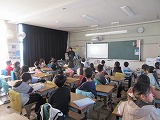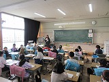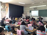 子どもたちはとても真剣な眼差しで聞いていました。最後にはしおりのプレゼントもあり大喜びでした。